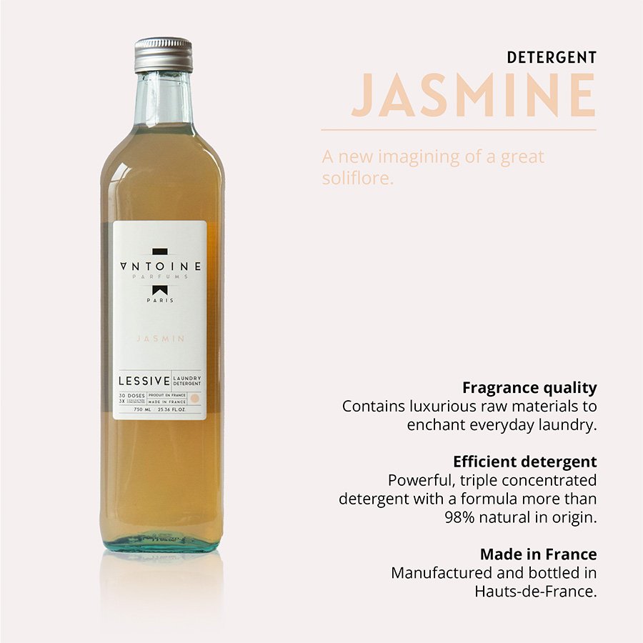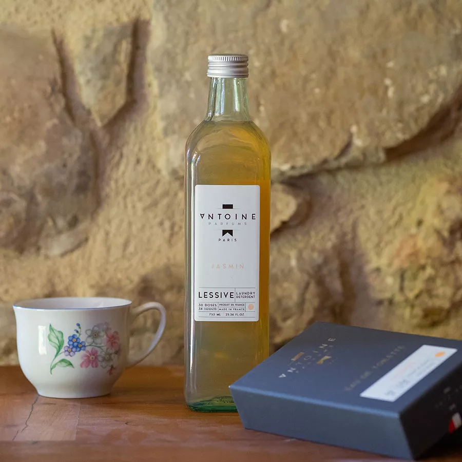 Antoine detergent is more than a detergent: it is a perfume that washes clothes. To magnify the action of the perfume, we had a tailor-made laundry formula developed by our partner, a specialist in the world of detergents. The objective is for the detergent to be effective without giving off an odor that disturbs the diffusion of our perfumes and ensures a perfect hold on the dry laundry. A single dozing cup per machine is enough to wash and embalm the laundry.